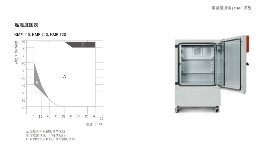 BINDER KMF 在整个检验室内确保绝对恒定的测试条件。恒温恒湿箱的一个巨大优势便是其较低的空间需求及其在供水方面的灵活性。宽广的温度和湿度范围使其成为压力系列测试的专家。