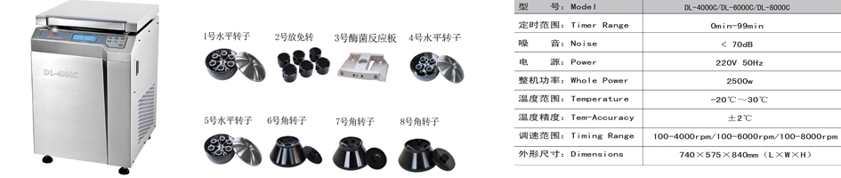 | 1号 | 水平式(带风罩) | 4000rpm (转/分) | 3800(×g) | 500mlx6 | 13500 |