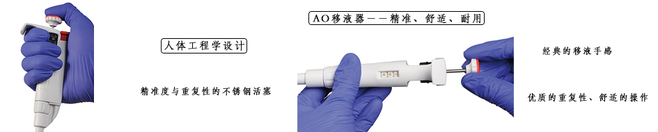 人体工程学设计,舒适轻便--AO系列移液器具备优异的人体工程学特性。如:新型工程学指撑,低阻尼的活塞推进力,创新的硅胶减震器,突破性的低阻力密封圈。可有效降低RSI带来的操作不适。