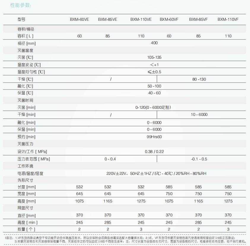 | 型号 | BXM-60VE | BXM-85VE | BXM-110VE | BXM-60VF | BXM-85VF | BXM-110VF |