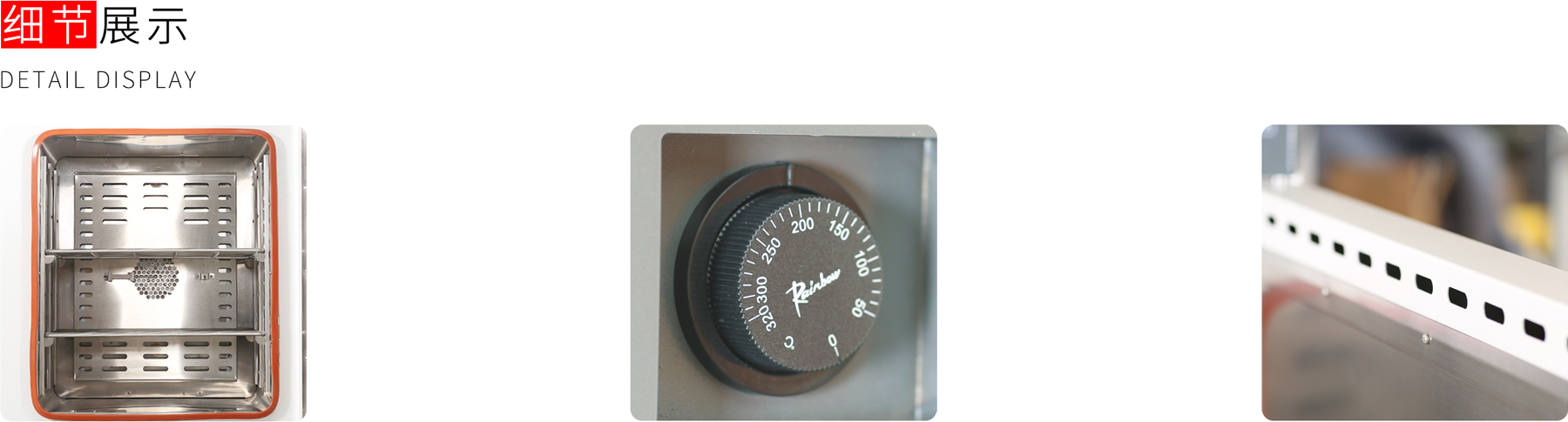 加热隔热:M型加热管内嵌入工作室四面,80mm玻璃纤维隔热棉加持空气夹层,确保外壳不烫手。