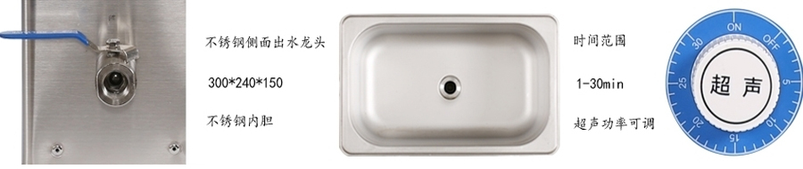 | 型号 | 外形尺寸mm | 内胆尺寸mm | 容积L | 超声频率Khz | 超声功率w | 加热功率w | 控温范围 | 定时范围min | 网架 | 降音盖 | 排水 | 价格 |