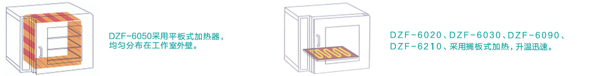 注:DZF-6032 隔板:2块(1块独立控温),DZF-6094隔板:4块(2块独立控温),DZF-6216隔板:6块(3块独立控温)