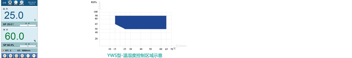采用超大屏幕彩色液晶触摸屏温度控制器,高精度PID控制温湿度,可设置定制和程序控制两种运行模式,即时显示设备运行状态,支持数据和曲线记录保存。