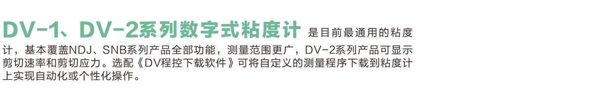 是目前最通用的粘度计,基本覆盖NDJ、SNB系列产品全部功能,测量范围更广,DV-2系列产品可显示剪切速率和剪切应力。选配《DV程控下载软件》可将自定义的测量程序下载到粘度计上实现自动化或个性化操作。