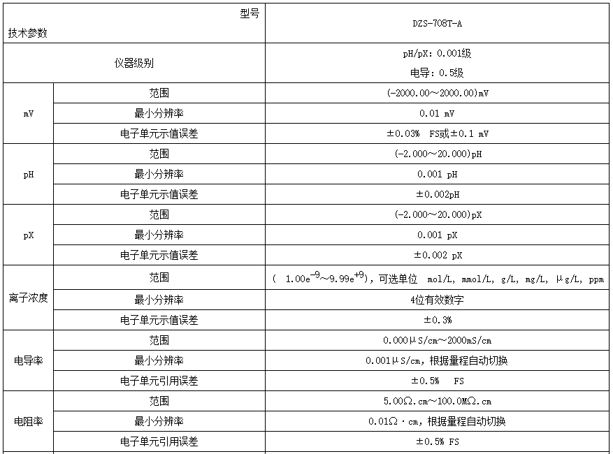 DZS-708T-A主机、E-301-QC型pH三复合电极、DJS-1VTC型电导电极、pH袋装缓冲溶液(3*10)、电导率溶液 1408μs/cm(1*10)、REX-6型多功能电极架等
