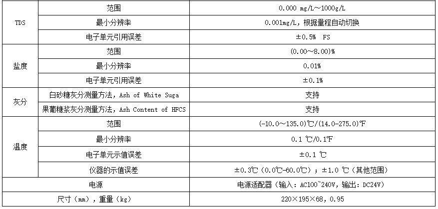 ●参比温度5.0°C、10.0°C、 15.0°C、 18.0°C、 20.0°C和25.0°C可选, 默认25°C