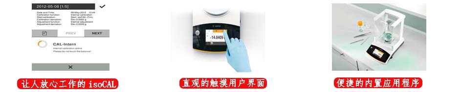 - 全新的用户界面与彩色触摸屏使得用户能够在无需阅读操作手册的情况下即可直观地操作天平