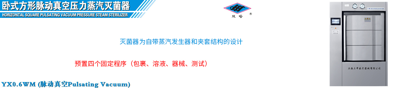 上海三申YX0.6WM卧式方形脉动真空压力蒸汽灭菌器技术参数