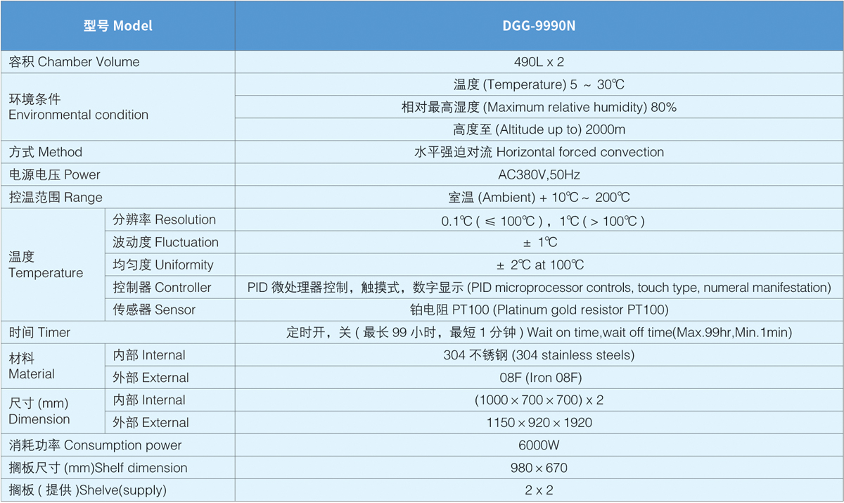上海森信DGG-9990N双工作室鼓风干燥箱技术参数