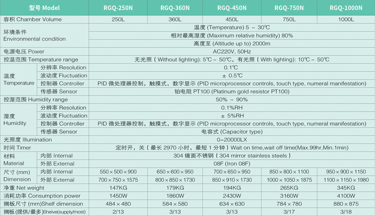 控温范围:无光照:5-50℃,有光照:10-50℃