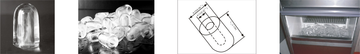 圆柱子弹头形冰,冰粒规整美观,透明程度好。