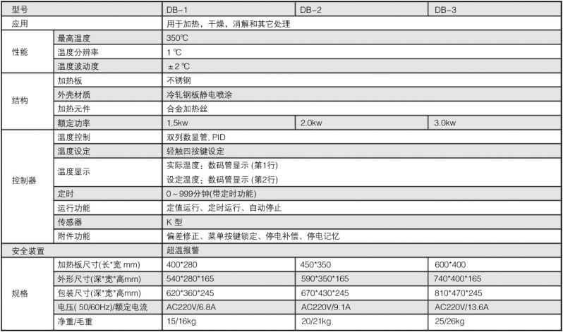 板面采用不锈钢制成,抗腐蚀、耐老化、使用寿命长,导热性好,温度均匀性高,有效加热面积大,升温速度快,有利于样品的加热。 控温系统采用微电脑芯片处理器,控温精度高,功能强。