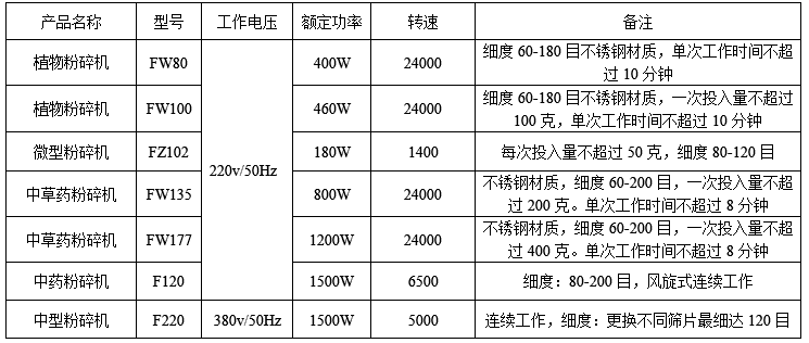 备注:不锈钢材质,细度60-200目不锈钢材质,一次投入量不超过200g,单次工作时间不超过8min