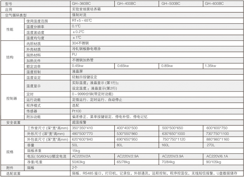 选配装置:隔板、RS485接口,打印机,记录仪,外部通讯,远程控制,程序控温仪,无线短信报警,U盘数据存储