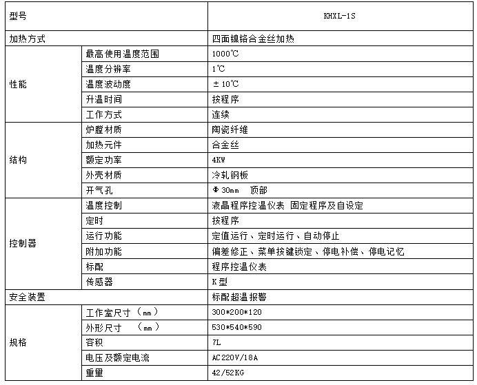 北京永光明KHXL-1S智能陶瓷纤维马弗炉技术参数