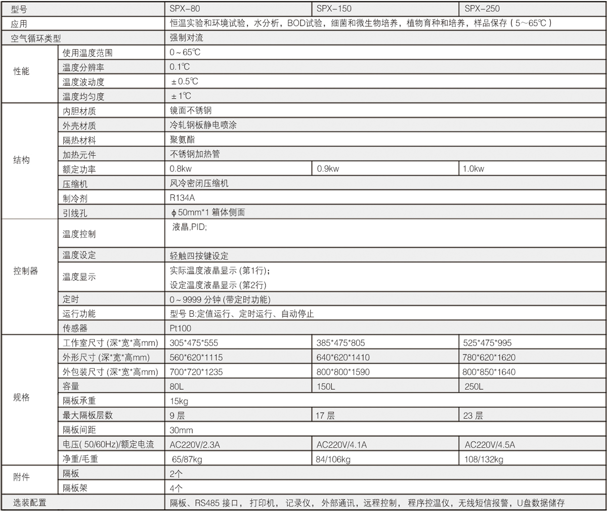 北京永光明SPX-250生化培养箱技术参数