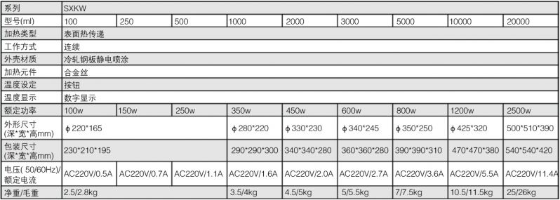 北京永光明SXKW电热套(数显式)技术参数